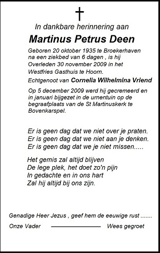 in Hoogedijk ( Zwaag ), overleden 16 april 1909 in