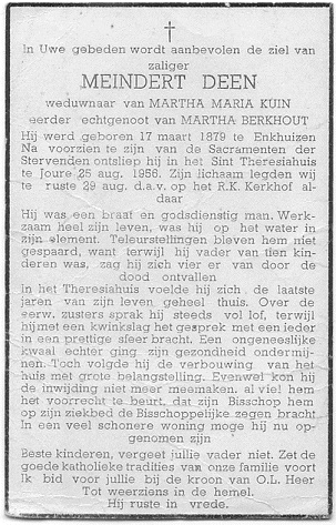 was van beroep fluitschipper ( onder meer De Sint Jacob) in Enhuizen.