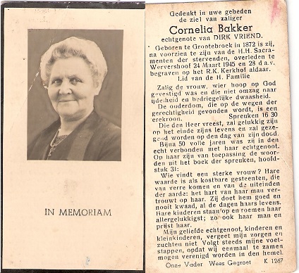 geboren 1883 in Hoogkarspel, dochter van Pieter van der Gracht