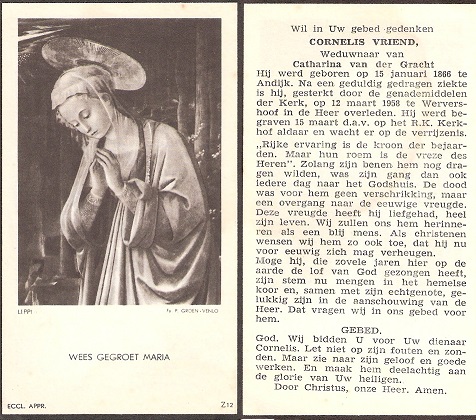augustus 1947 in Andijk getrouwd op 24 april 1895 in Andijk met Cornelia Bakker, geboren 15